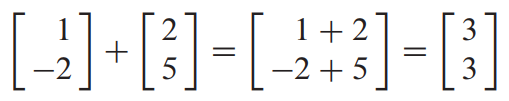 R2에서 Vector가 Equal 하려면 각 Entry 모두가 같아야 한다. 예를 들어서 (7, 4)와 (4, 7) Vector는 순서가 다르기 때문에 서로 다른 것이다. 벡터의 합은 다들 알겠지만, 각 Entry의 값을 더하면 된다. 편의를 위해 표기할 때 Column Vector는 (4, 7) 소괄호를 사용하고, Row Vector는 [4 7] 대괄호를 사용한다. 아래의 예시를 참고할 수 있다.