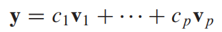 Vector y가 다른 여러 개의 벡터의 합과 scalar 곱으로 정의되는 것을 Linear Combination이라고 한다.