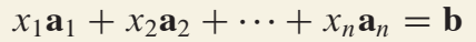 위의 Augmented Matrix의 Solution이 존재할 때, b는 a1, ... , an Vector의 Linear Combination으로 만들 수 있다고 말한다.