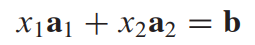 Vector는 위의 처럼 정의되고, b는 a1과 a2의 Linear Combination으로 만들어진 결과이다. 이때 x1과 x2의 Solution이 존재하는지 확인해라.