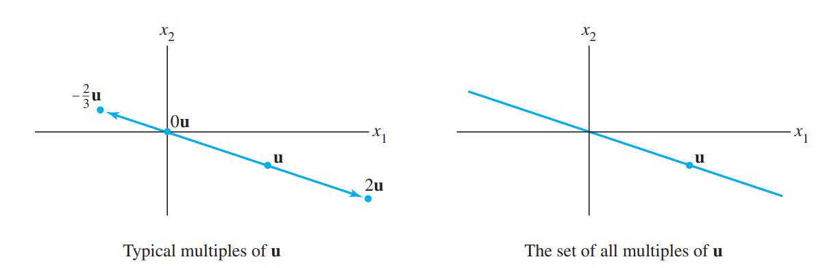 첫 번째 사진을 보면 알 수 있듯이 -가 붙으면 방향이 반대가 되고 Scaling이 된다. 두 번째 사진은 u의 모든 집합을 표현한 것이다. 어떠한 Scalar를 곱했을 때 가능한 모든 경우이다.