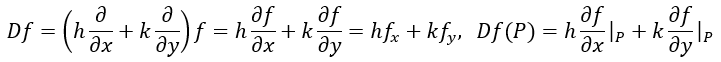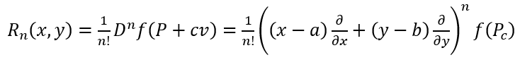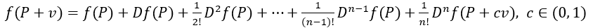 f(x, y)가 어떤 열린집합 U에서 (n + 1)번 미분가능한 함수이고, v = (h, k)라고 하자. U의 두 점 P = (a, b)와 P + v = (a + h, b + k)를 연결하는 선분이 U에 포함될 때, 즉 모든 t in [0, 1]에 대해 P + tv가 U에 속할 때, 다음 식을 만족하는 c가 존재한다.