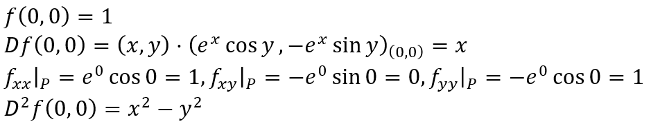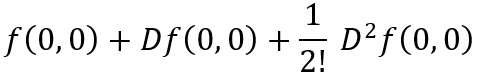 f(x, y)의 (0, 0)에서의 이차근사식과 오차항을 구해보자.