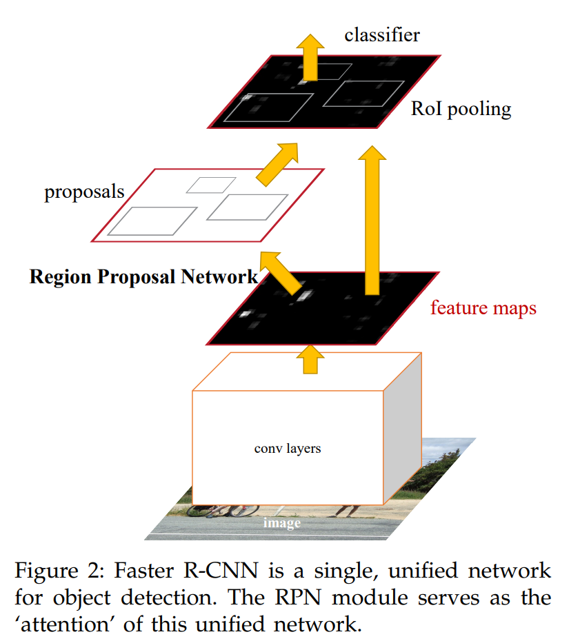 RPN 모듈은 Fast R-CNN 모듈이 어느 곳을 봐야 할지 알려주는 Attention 기능을 제공한다.