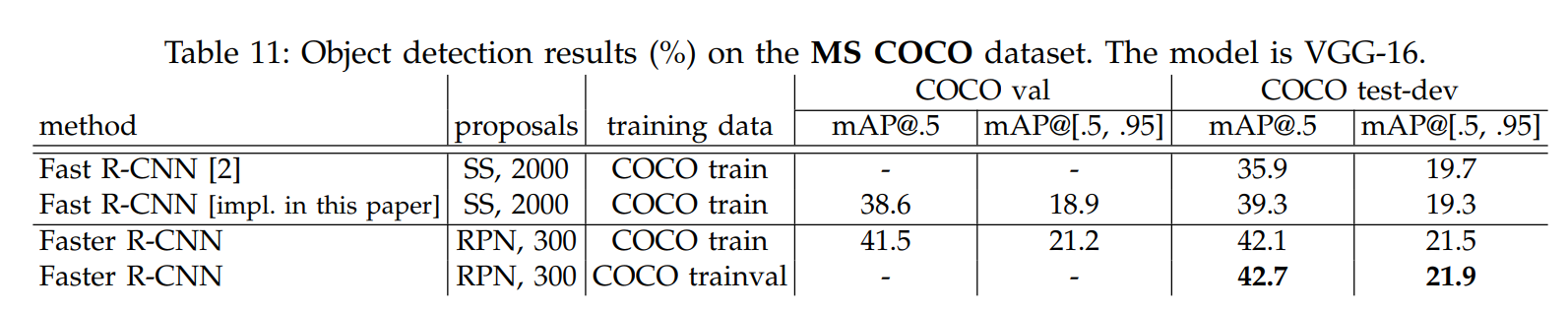 위의 표 11을 통해 RPN이 성능이 더 좋은 것을 확인할 수 있고, mAP@[.5, .95]의 성능 차이를 통해 높은 IoU Threshold에서도 Localization 정확도가 높은 것을 확인할 수 있다.
