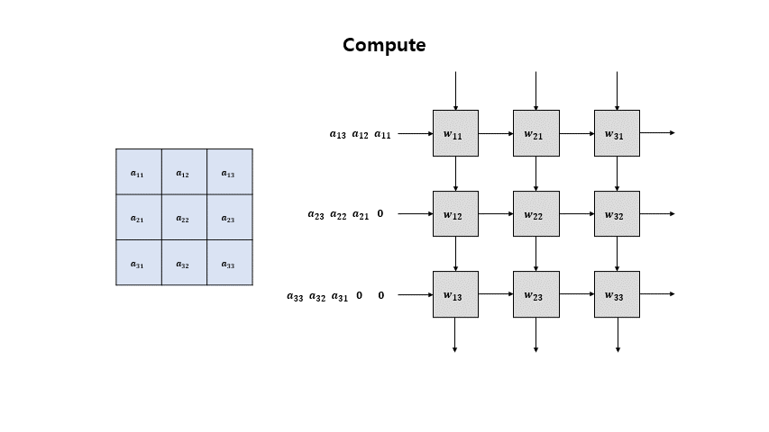 이렇게 계산하게 되면 단 8 cycle 만에 3x3 matrix multiplication이 가능하게 된다.