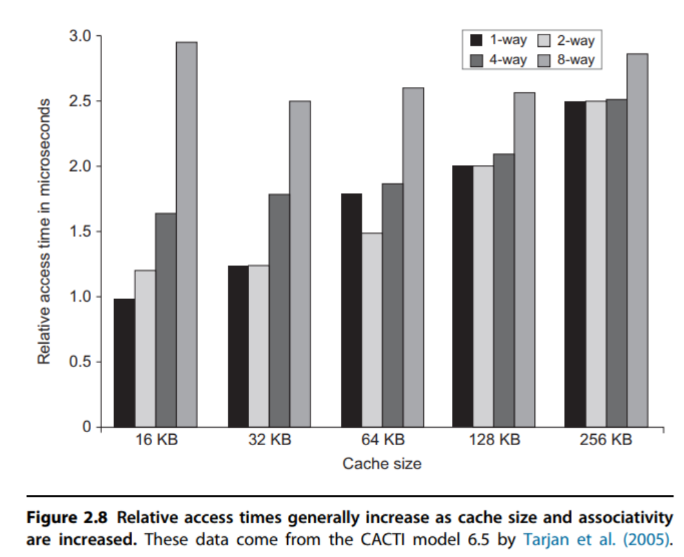 그림에서 볼 수 있듯이 way 수가 많을수록 Access Latency가 증가하는 경향을 보이는 것을 알 수 있다.