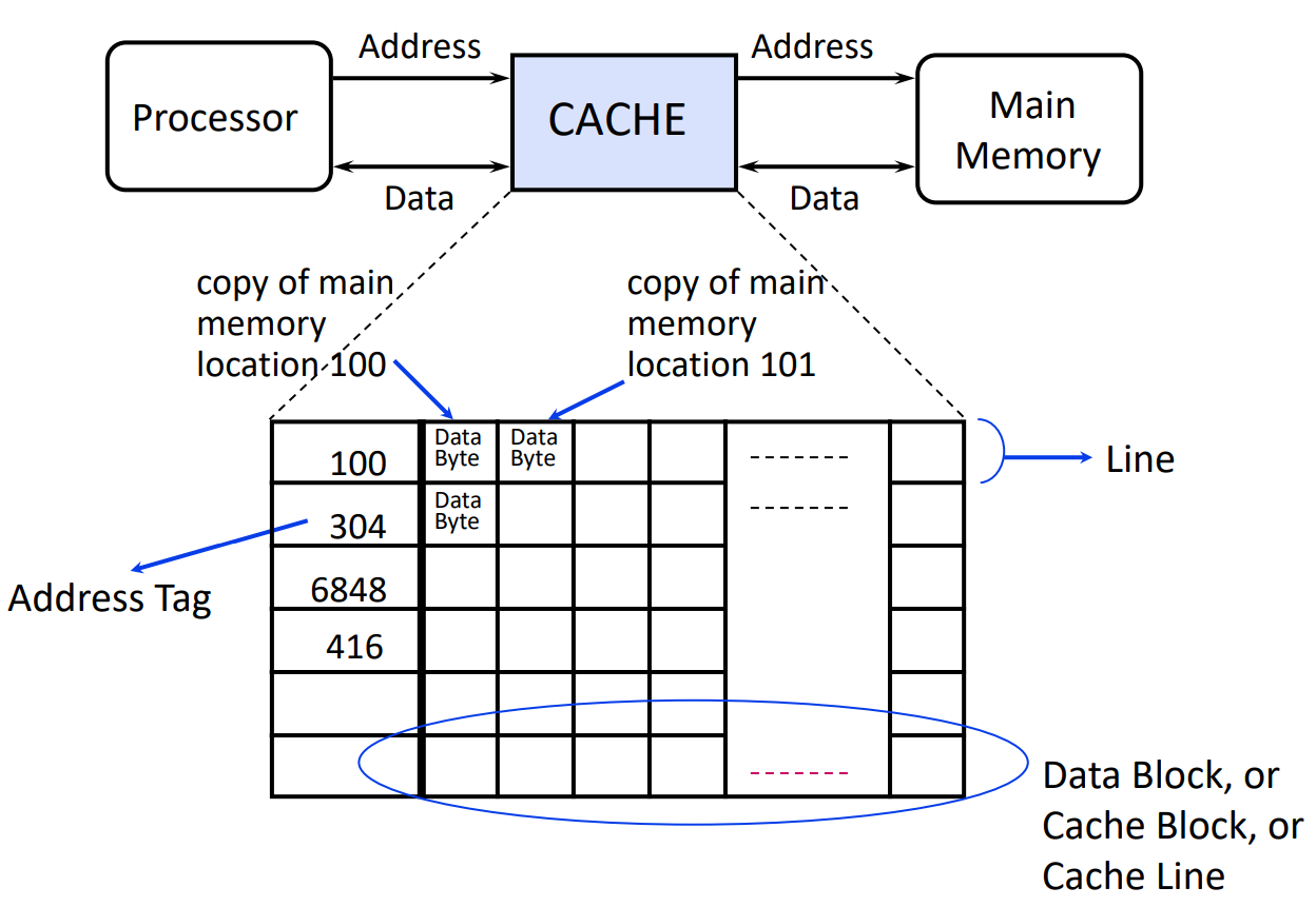 Cache는 위에서 언급한 SRAM을 의미하는 것으로 Register와 DRAM 사이에 존재한다.