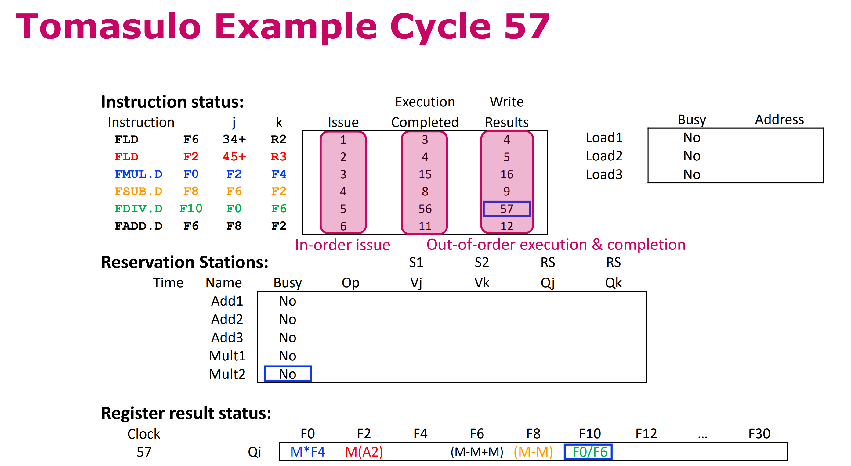 - Busy: Reservation Station 또는 FU가 Busy 상태인지 확인