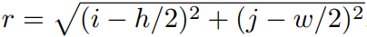 위에 사진을 보면 알 수 있듯이, i와 j coordinate가 추가되고 각 채널은 h x w 크기의 rank-1 행렬이다. 각 값들은 [-1,1] 범위의 값들로 연속되어 분포해 있다. 웬만하면 i, j coordinate 정보만으로 충분하지만 가끔 몇몇 case에서는 r coordinate가 필요할 때도 있다. r좌표는 아래와 같이 정의된다.