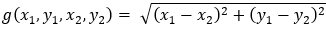 위의 함수는 두 점을 독립 변수로 받아서 거리라는 종속 변수를 도출해 내는 것이다. 총 독립 변수가 4개인 다변수 함수이다.