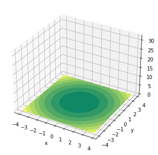 아래와 같은 예시를 하나 보겠다. 아래는 이변수함수로, 각각 x, y, z 축을 의미한다.