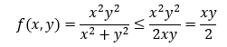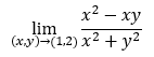 쉽게 구할 수 있을 것이다. x에 1, y에 2를 대입하면 -1/5라는 값이 나온다. 하지만 이때 이 함수가 연속인지를 먼저 확인하는 것이 중요하다. 4) 성질에 의하여 (0,0) 일 때 아래 식이 0이 되므로 연속하지 않는다. (0,0)을 제외한 점에선 연속이므로, 극한값을 함숫값으로 사용할 수 있다.