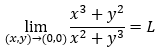 그럼 이제 다변수 함수의 극한의 예제를 보겠다. 아래 식은 x, y가 모두 0으로 접근할 때 극한값이 어떻게 되는지 확인하는 것이다. 한번 시간을 가지고 생각해 보면 좋을 것이다.